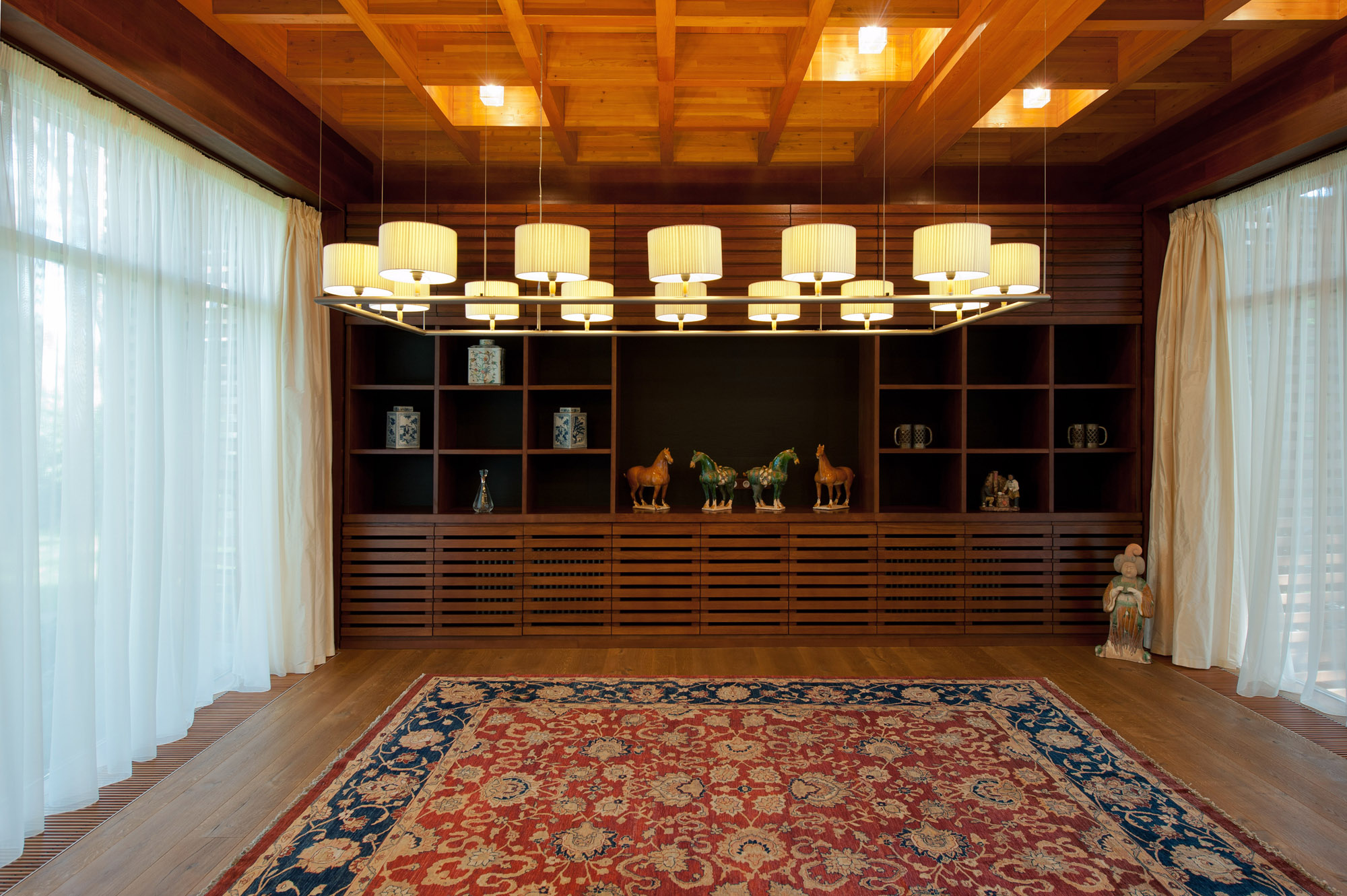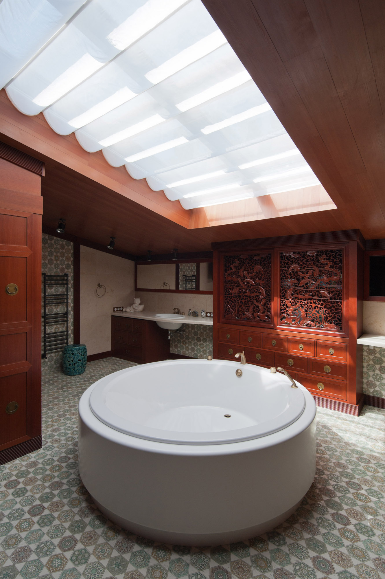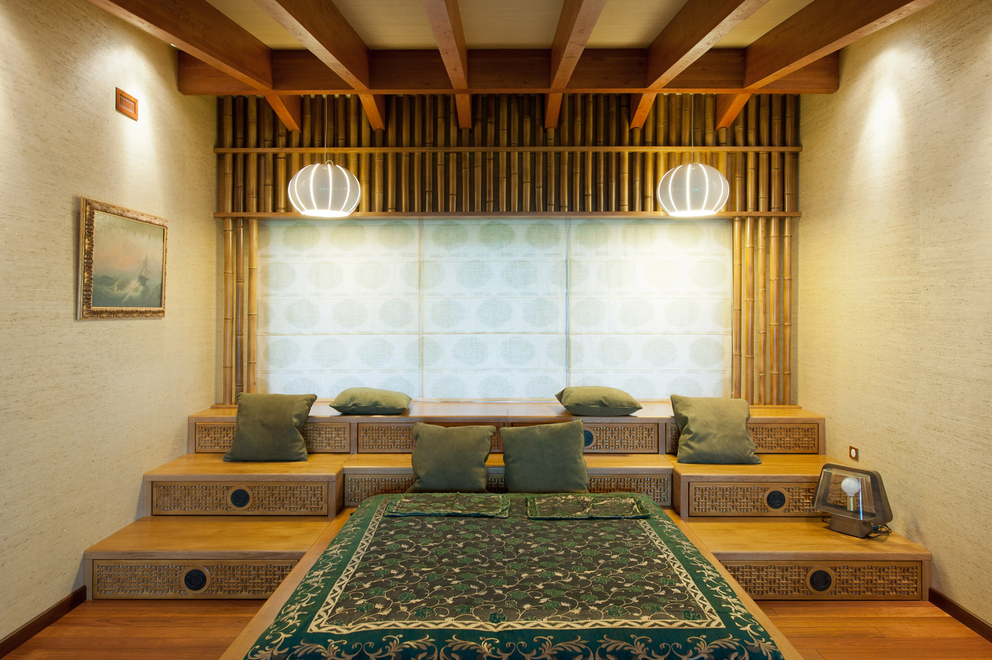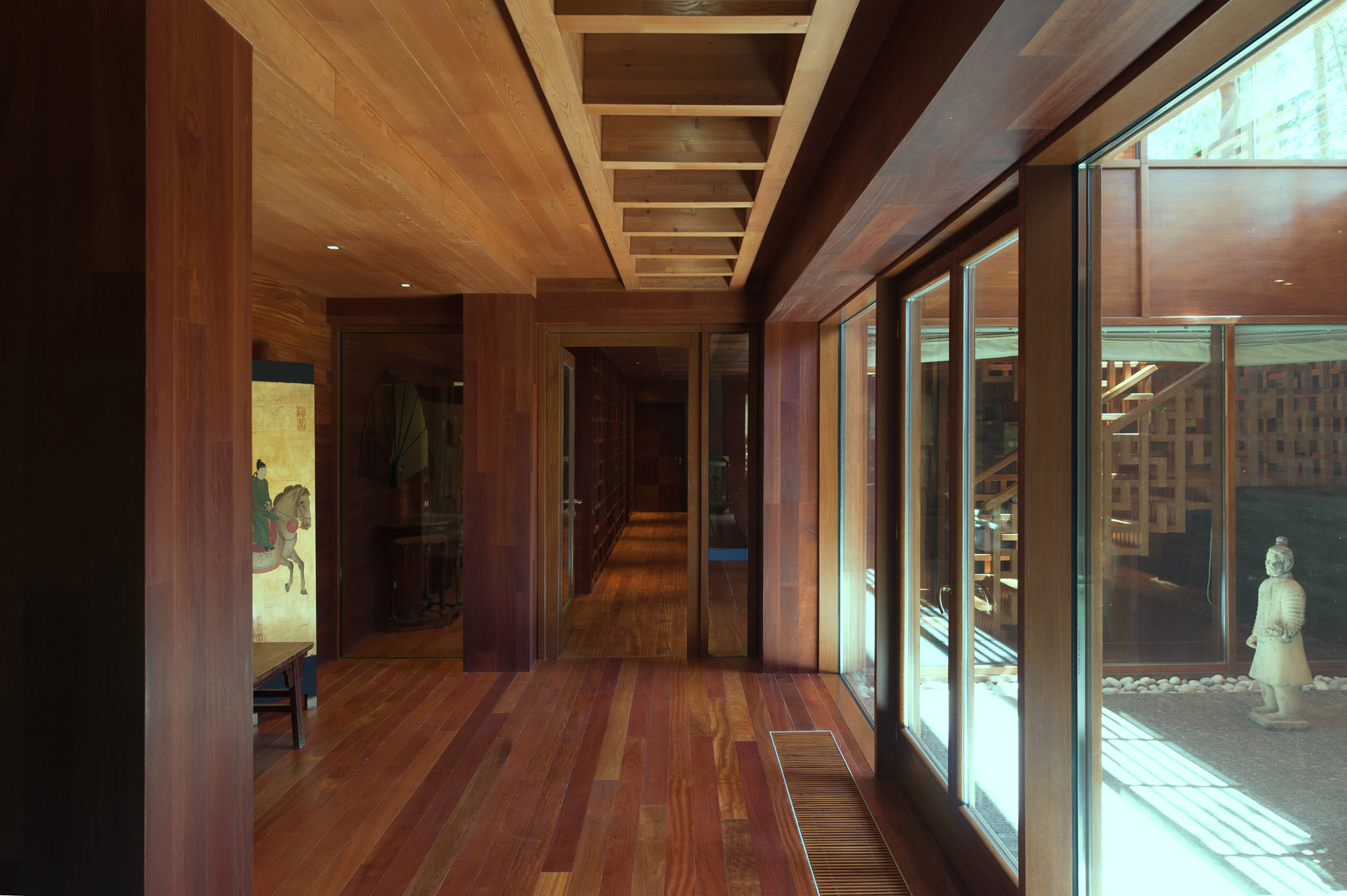 С нулевого на третий этаж ведет лестница, также выполненная по индивидуальному проекту в китайской стилистике.